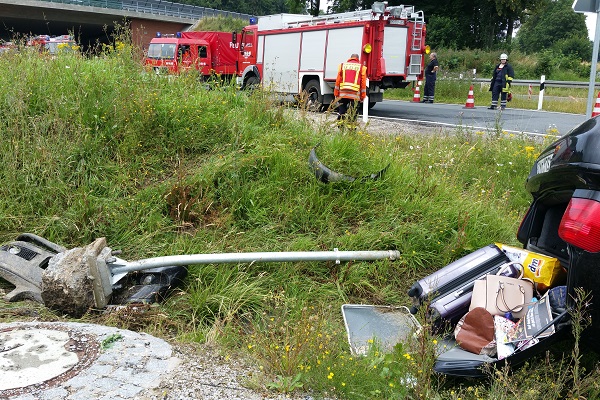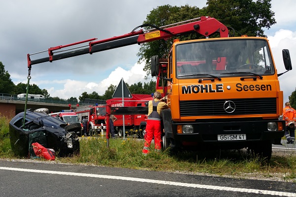 2016 07 17 002Zwei verletzte Personen und auslaufende Be-triebsstoffe sind die Bilanz eines  Verkehrs-unfalls im Bereich der BAB Anschlußstelle Seesen.