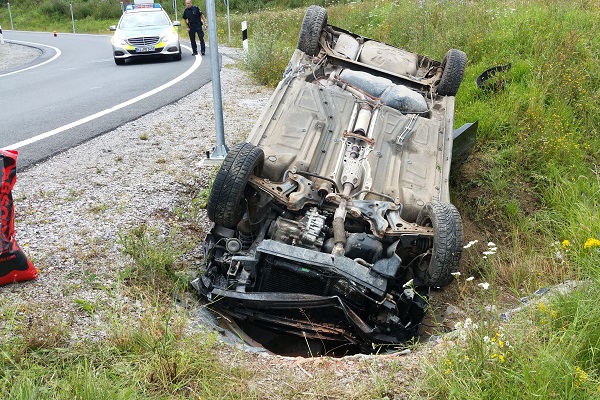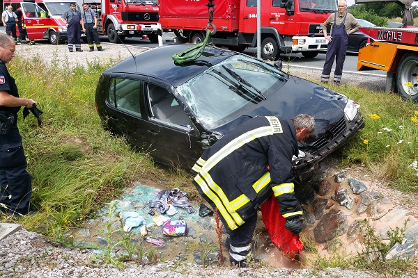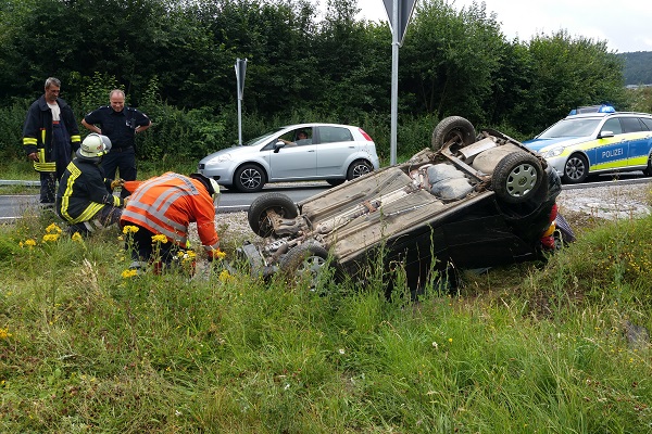 Am heutigen Sonntag gegen 12.20 Uhr befuhr ein VW Polo aus Aschersleben die A7 in Fahrtrichtung Hannover, die er an der Autobahnanschlussstelle Seesen verlassen wollte. Aus noch unbekannter Ursache geriet das Fahrzeug im Kurvenbereich der AS 67 außer Kontrolle, überschlug sich und blieb auf dem Dach im Regenwassereinlauf stecken. Zum Glück konnten sich die zwei Insassen aus ihrem Fahrzeug selbst befreien, so das die alarmierten Feuerwehren aus Seesen und Rhüden nicht mit Rettungsgeräten eingreifen mussten. Die Feuerwehr Seesen streute jedoch die ausgelaufenen Betriebsstoffe im Bereich des Regenwasserkanals ab. Beide Insassen wurden vom Rettungsdienst behandelt und ins Krankenhaus gebracht. An dem Fahrzeug entstand Totalschaden.