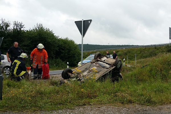 PKW überschlägt sich im Abfahrtsbereich der BAB 7