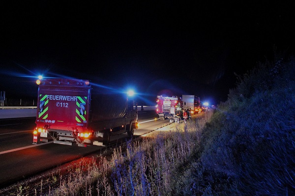 Währenddessen war der nahezu gesamte Diesel-Tankinhalt ausgetreten und verunreinigte die Fahrbahn sowie den Fahrbahnrand und das Erdreich. Auch der Lkw war bereits massiv mit Diesel behaftet. Mehr als ein Auffangbehälter und Bindemittel kamen hierbei nicht zum Einsatz, sodass die Seesener Einsatzkräfte nach ca. 2 Stunden kurz vor Eintreffen des herbeigerufenen Lkw-Pannendienstes die Einsatzstelle an die Autobahnpolizei übergeben und einrücken konnten.