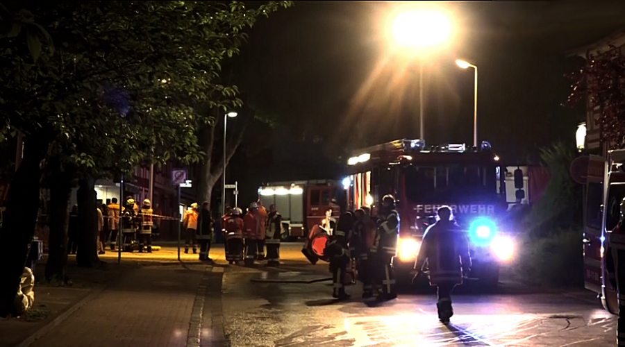Die Polizei erhielt zunächst über Notruf Kenntnis darüber, dass es in einem als Lager genutzten Raum, in einem Wohnhaus in der Langen Straße, zu einem Brand gekommen war. Es handelte sich hiebei um das Hinterhaus einer alten Bäckerei. Zunächst gingen die Einsatzkräfte gar von einem Dachstuhlbrand aus, da mit diesem Einsatzstichwort alarmiert wurde. Wie sich am Einsatzort allerdings herausstellte brannte es aber im Erdgeschoss und dies in erheblichem Umfang.