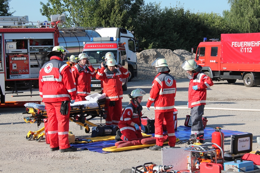 Da mehrere Personen unter einem Lkw-Anhänger eingeklemmt waren, und es zu einem Brand in unmittelbarer Nähe der Verletzten gekommen war, wurde nach der Alarmierung der Meldeempfänger umgehend auch die Sirene ausgelöst. Für die Verletztenversorgung wurde das DRK Seesen zu Einsatzstelle beordert.