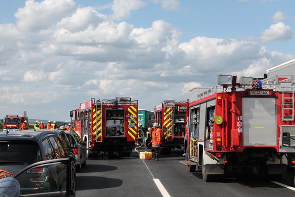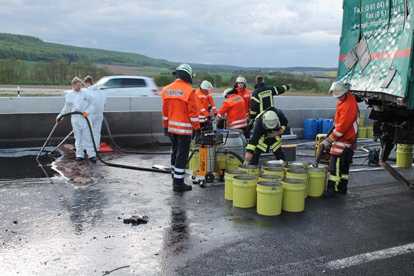 Die enorme Hitze des Feuers ließen die beiden Kraftstofftanks an dem verunfallten Lkw schmelzen. Der freigewordene Kraftstoff vermischte sich mit dem aufgebrachten Löschwasser, daher musste mittels Ölsperre und mehreren Sinkkasten-Schnellverschlüssen verhindert werden, dass das umweltgefährdende Gemisch in die Oberlächenentwässerung der Autobahn gelangt. Im Anschluss an diese Sicherungsmaßnahmen wurde das Kraftstoff-/Wassergemisch von den Einsatzkräften in bereitgestellte Behälter gepumpt.