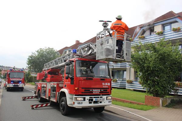 Großeinsatz der Feuerwehren an der Seniorenwohnanlage am Schildberg: Um 10.46 Uhr wurden die Einsatzkräfte aus Seesen am Mittwochvormittag in die Fritz-Züchner-Straße gerufen. Aus einer Wohnung im zweiten Geschoss drangen Rauchwolken empor. Die Sirenen heulten über Seesen und die Einsatzfahrzeuge bahnten sich mit Blaulicht und Martinshorn ihren Weg zum Orte des Geschehens.