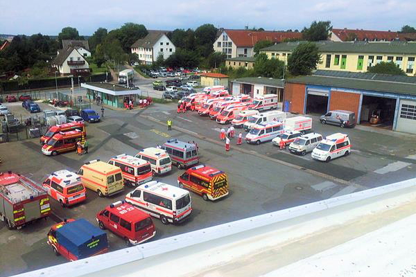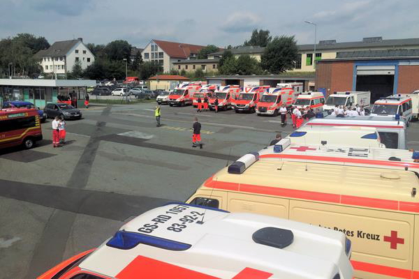 Da zu diesem Zeitpunkt nicht klar war, wie sich die weitere Lage entwickelt, hat die Einsatzleitung vor Ort die sogenannte MANV (ein Massenanfall von Verletzten) ausgelöst. Zahlreiche Helfer aus den umliegenden Landkreisen wurden daraufhin alarmiert. Diese fuhren den Bereitstellungsraum auf dem Gelände der Firma Crown an, der von Kräften der Werkfeuerwehr eingerichtet wurde.