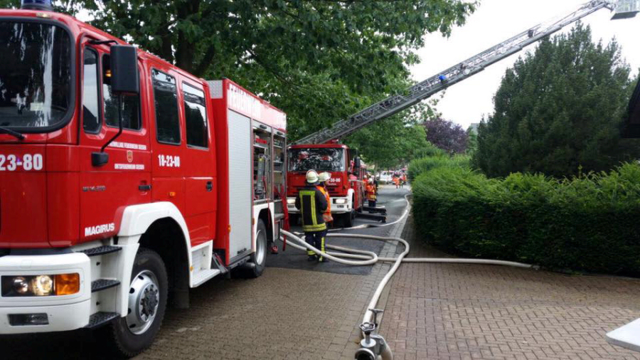 Noch nicht einmal eine kleine Verschnaufpause ist den Feuerwehren und Rettungsorganisationen aus dem Stadtgebiet vergönnt. Die Hochwasserschäden sind noch nicht beseitigt, der Großbrand im Gewerbepark steckt allen noch in  den Knochen und nun gestern am frühen Nachmittag auch noch das: Ein Großaufgebot an Rettungskräften wurde zur Wilhelmshöher Straße alarmiert. Dort stand der Dachstuhl eines Einfamilienhauses in Flammen. Nachbarn hatten bei den Bewohnern geklingelt, sie auf die Rauchentwicklung aufmerksam gemacht und die Feuerwehr gerufen.