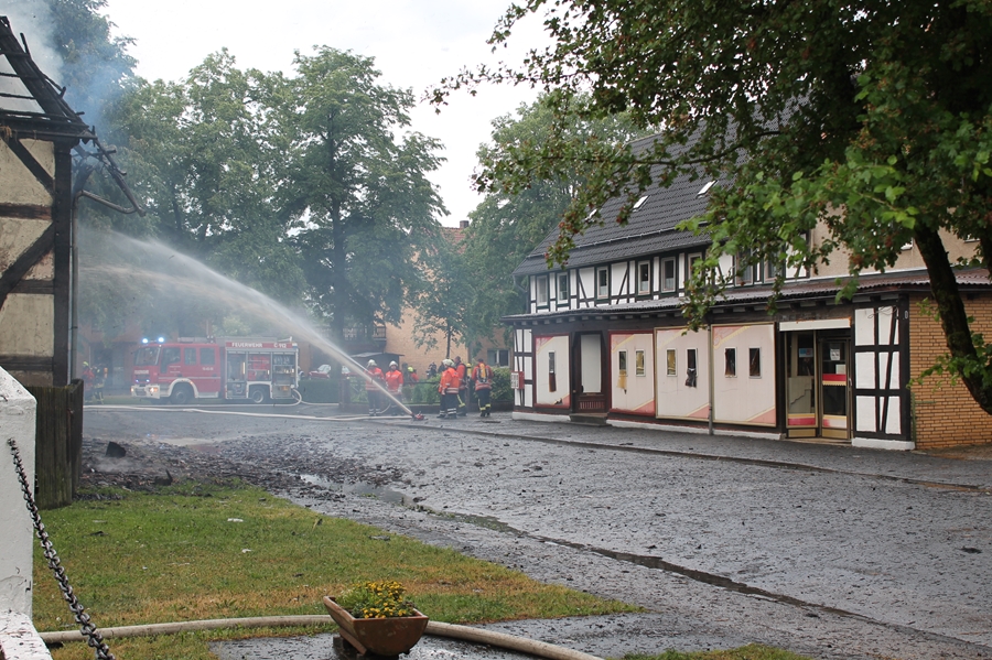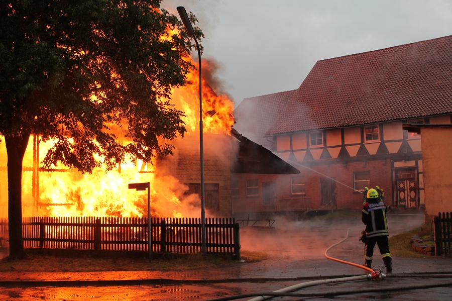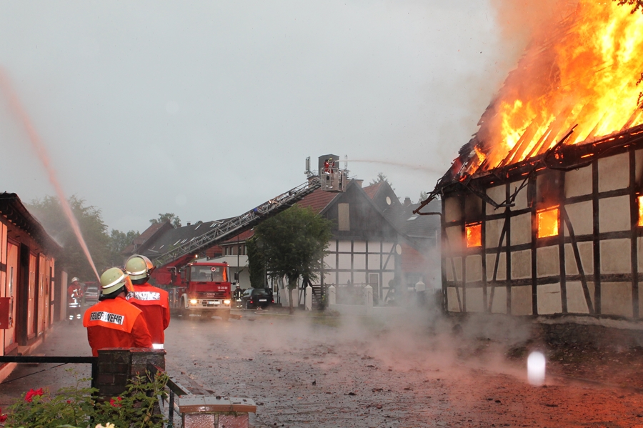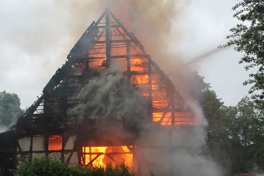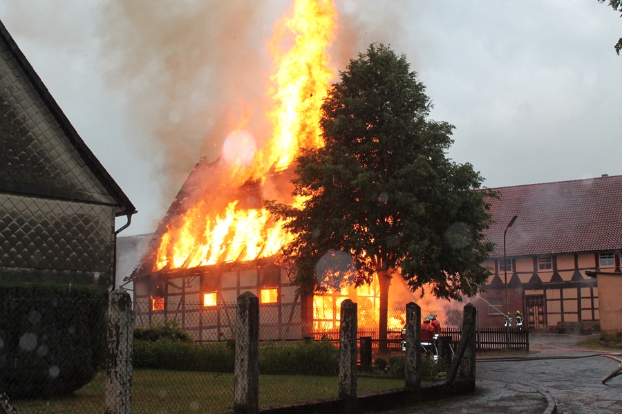 Die historische Scheune stammt aus dem sechzehnten Jahrhundert, ist Teil eines landwirtschaftlichen Anwesens und stand direkt neben dem Wohnhaus sowie weiteren Geräteschuppen des Grundstückeigentümers. Ein Anwohner berichtete, dass unmittelbar nach dem Blitzschlag bereits Flammen aus dem Dach schlugen, die in Windeseile die gesamte mit Strohballen gefüllte Scheune erfassten. Nur so ist auch zu erklären, dass beim Eintreffen der Seesener Kräfte das Strohlager bereits im Vollbrand stand.