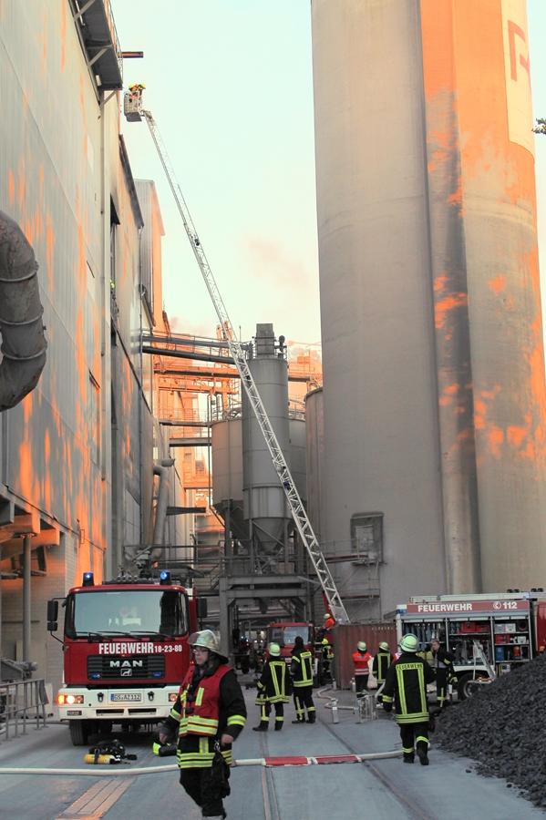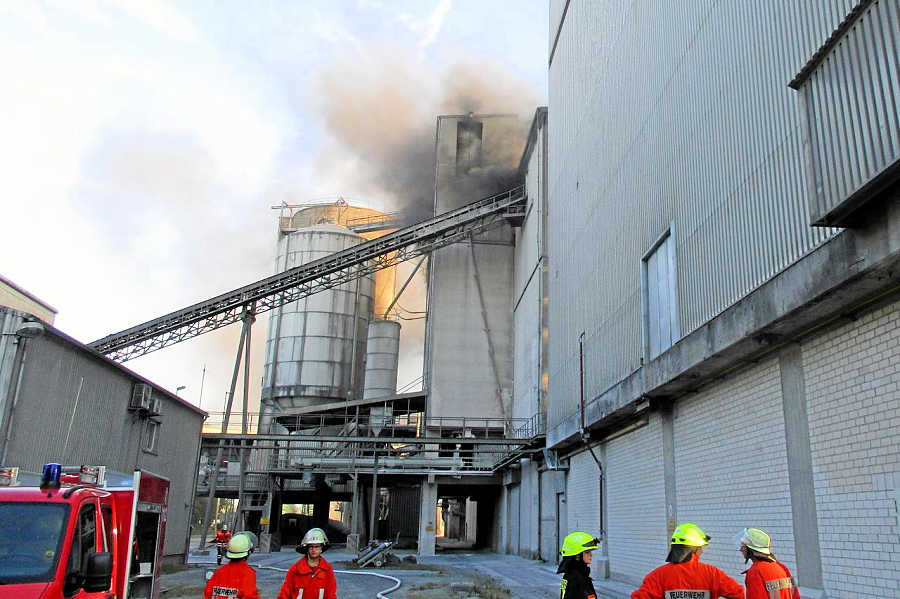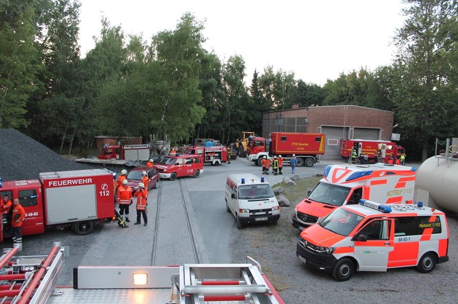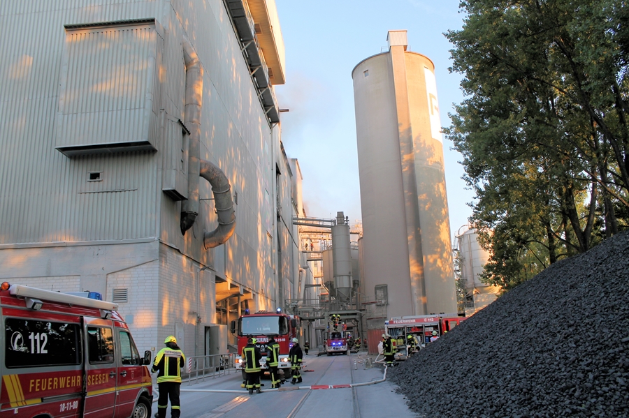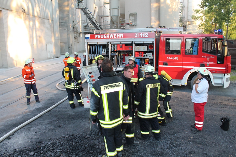 Mehr als 200 Feuerwehrleute aus den Landkreisen Goslar und Göttingen waren heute Nacht auf dem Gelände der Fels-Werke in Münchehof im Einsatz und kämpften gegen einen Großbrand. Im Kalkwerk Münchehof war ein einhundert Meter langes Förderband heiß gelaufen und hatte den Brand gegen 19.30 Uhr ausgelöst. Die schwarzen Rauchsäulen standen hoch über dem Werksgelände.