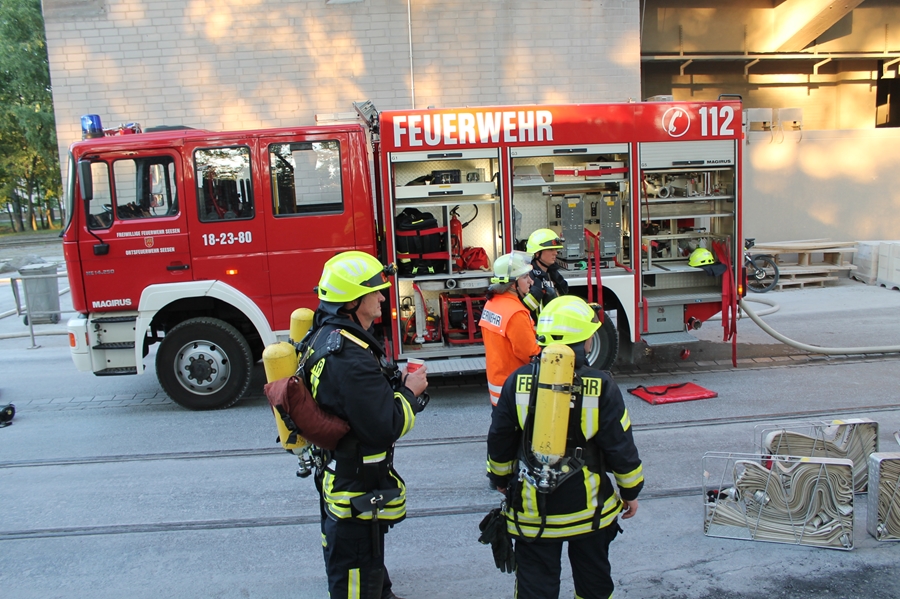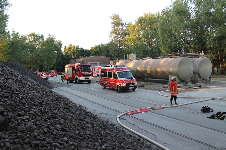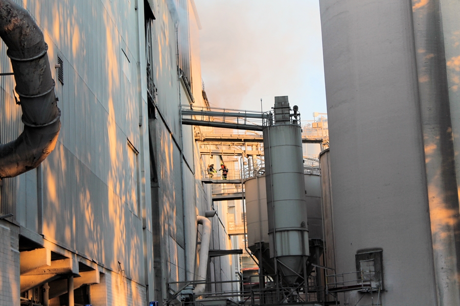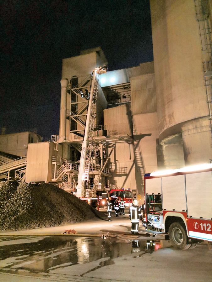 Für die eingesetzten Kräfte im Inneren der Anlage keine leichte Aufgabe. Es galt bei sehr hohen Temperaturen und einer starker Sichtbehinderung durch die enormen Mengen an Rauchgasen, das Feuer schnell und effektiv zu bekämpfen.