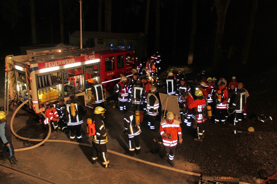 Von der Feuerwehrtechnischen Zentrale waren der Einsatzleitwagen 2 und der Wechsellader Atemschutz im Einsatz. Außerdem waren der Kreisbrandmeister und die Pressegruppe der Kreisfeuerwehr vor Ort. Gegen 22:20 Uhr konnten die Einsatzkräfte Feuer unter Kontrolle melden. Endgültig war das Feuer erst um 23:30 Uhr gelöscht. Für einen Großteil der eingesetzten Kräfte war der Einsatz aber erst weit nach Mitternacht beendet.