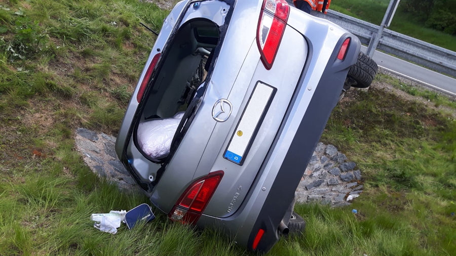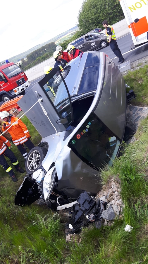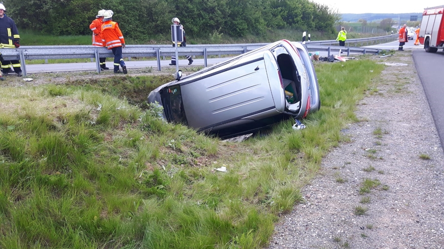 Eine Frau aus Hamburg war mit ihrem Auto von der Fahrbahn abgekommen und in den Straßengraben gefahren. Sie überfuhr ein Straßenschild und stieß danach gegen einen gepflasterten Wasserablauf, einen so genannten Düker. Das Auto blieb dabei auf der Seite liegen. Die Frau und ihr Hund waren somit in Ihrem Auto eingeschlossen. Das Fahrzeug wurde durch die Feuerwehr von außen in seiner Lage stabilisiert und die Hamburgerin wurde mit Hilfe von Steckleitern aus ihrem Fahrzeug befreit. Die auslaufenden Betriebsstoffe wurden mit Hilfe von Ölbindemitteln aufgefangen.