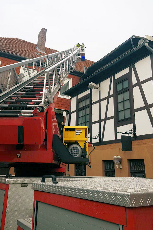 Das Hauptproblem in dieser Nacht war eine Dachabdeckung der Firma Crown. Platten hatten sich gelöst und waren auf die Braunschweiger Straße geflogen. Darüber hinaus lag weiteres ungesichertes Bau- und Arbeitsmaterial auf dem Dach und droht vom Sturm herunter geweht zu werden. Der Sturm ist allerdings zunächst so stark, dass das Material nicht vom Dach geholt werden kann. Ab 22 Uhr musste die Durchfahrtstraße daher vorübergehend gesperrt werden. Der Verkehr wird über den Hodagswinkel, Krummen Kamp und die Fritz-Züchner Straße abgeleitet. Erst als der Sturm abflachte konnte in den frühen Morgenstunden Entwarnung gegeben werden.