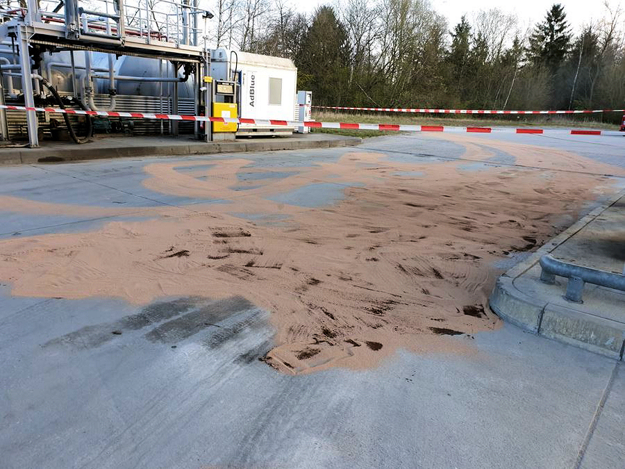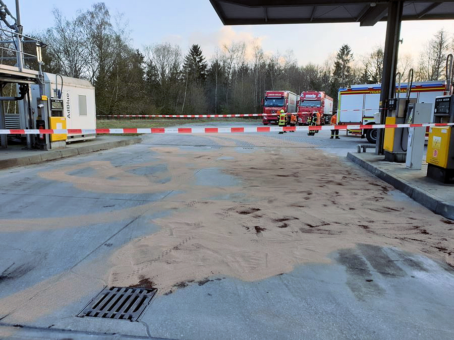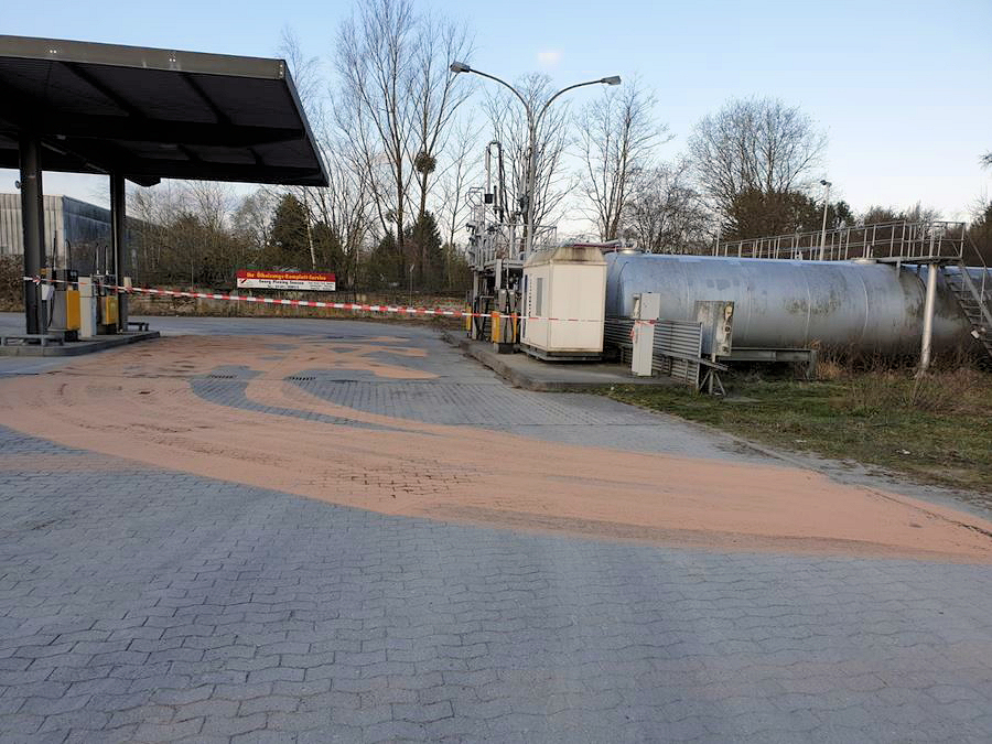 Der erste Einsatz begann früh morgens um 06:55 Uhr auf dem Betriebsgelände der Firma Piening GmbH an der Braunschweiger Straße. An der dortigen Tankstelle waren ca. 100 Liter Dieselkraftstoff ausgelaufen. Um eine weitere Ausbreitung zu verhindern, wurde der Treibstoff mit einem Bindemittel abgestreut. Der Eigentümer kümmerte sich später um die restlose Aufnahme des Ölbindemittels und dessen korrekte Entsorgung als Sondermüll. Ein Verursacher konnte - einmal mehr - nicht ermittelt werden.