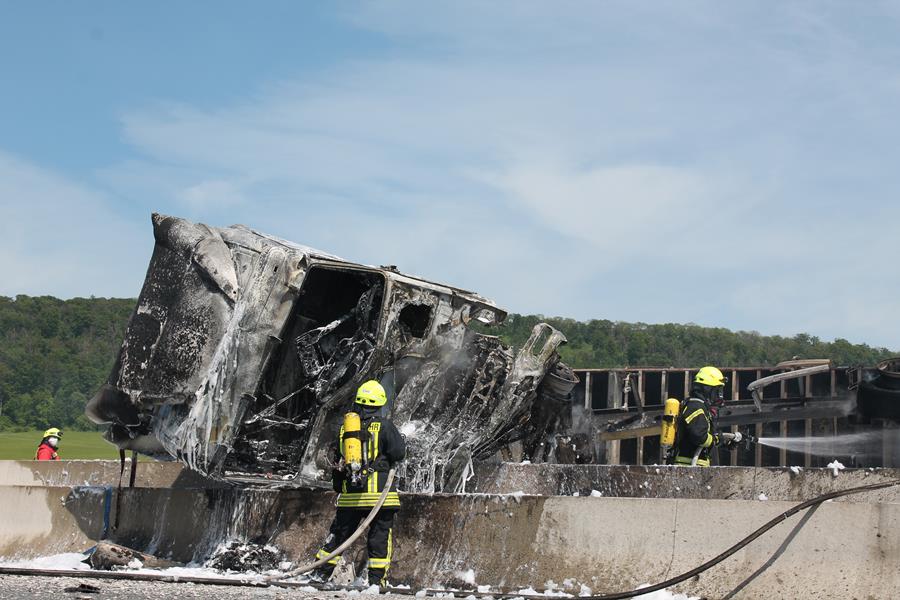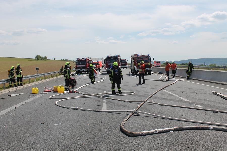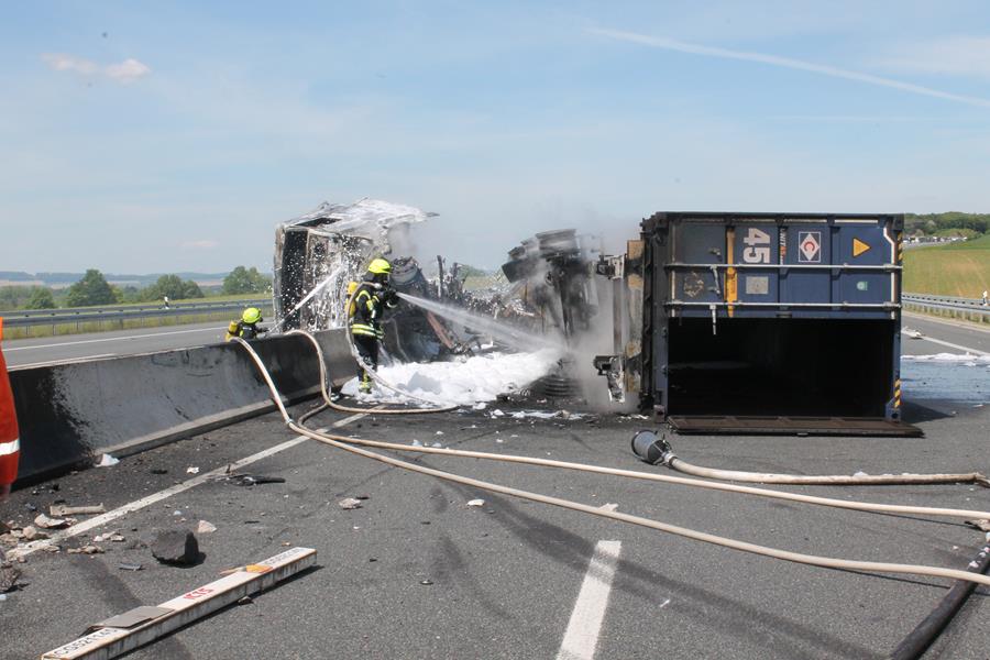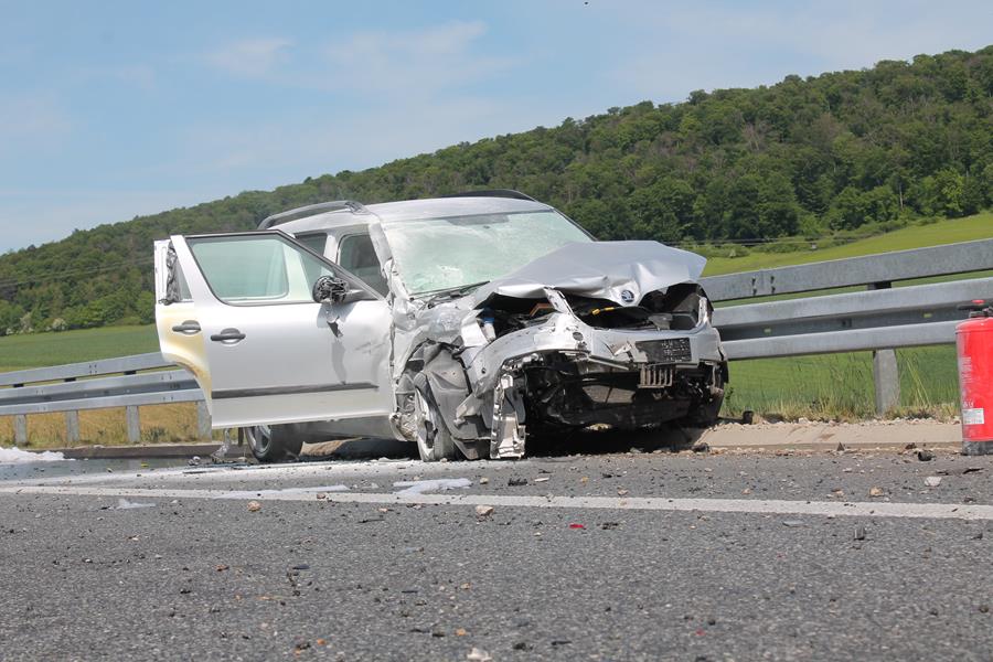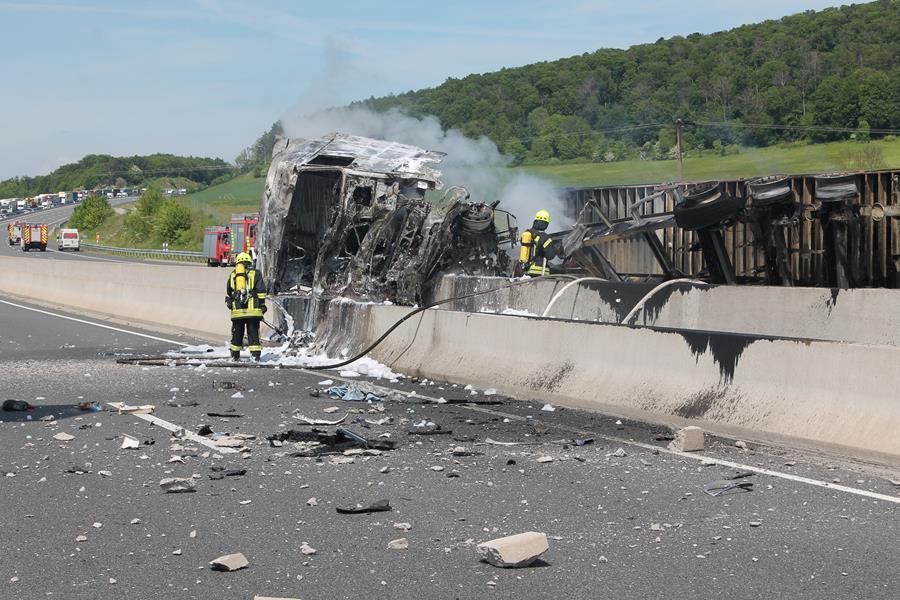 Schwerer Verkehrsunfall zwischen Lkw und Pkw auf der A7