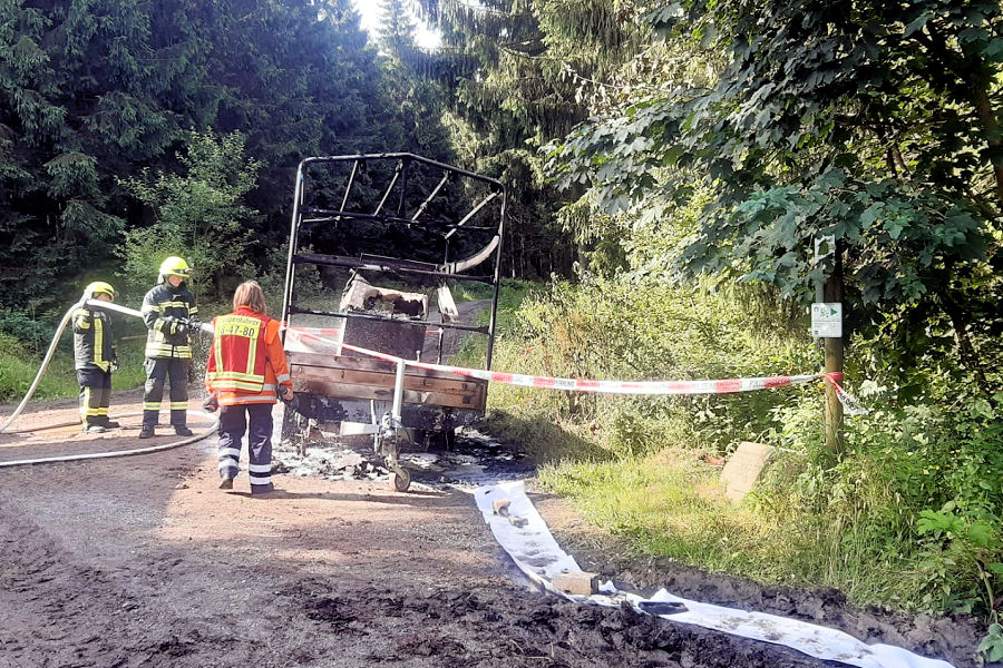 In den Morgenstunden des 13. Juli 2021 wurde die Ortsfeuerwehr Seesen von der Polizei zu Nachlöscharbeiten an einem ausgebrannten Pkw-Anhänger alarmiert.