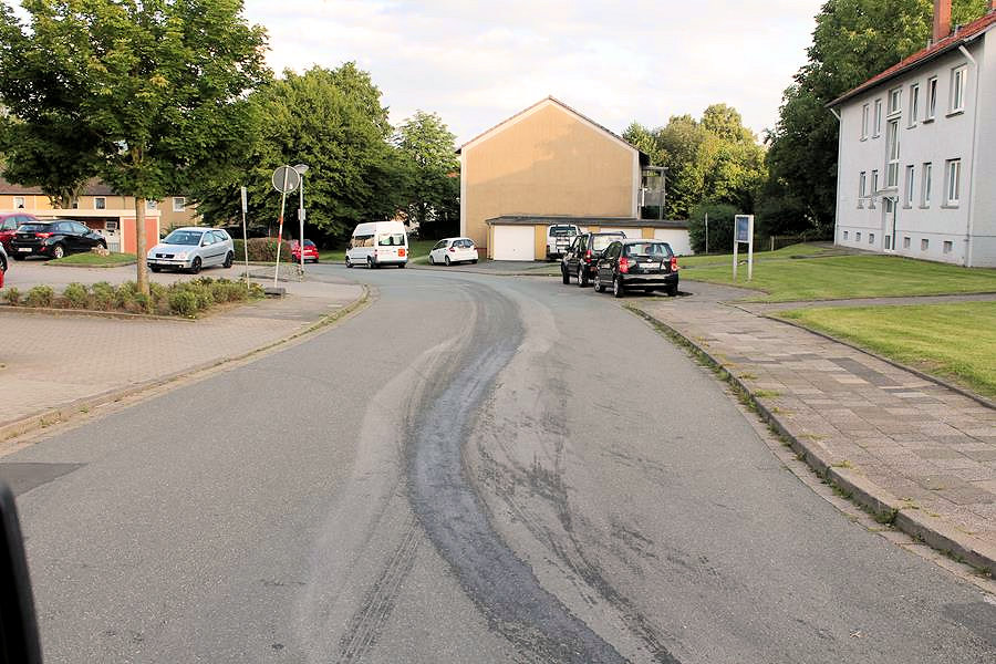 Die Straßenverunreinigung durch die Ölspur führte von der Shell Tankstelle über die Bornhäuser Straße, Königsberger Straße, Posener Straße, An der Masch, Bornhäuser Straße und weiter über die Wallstraße, Gartenstraße, Frankfurter Straße bis zur Herrmann-Löns-Straße. Dort angekommen stellte der Verursacher den Pkw bei einer Werkstatt ab.