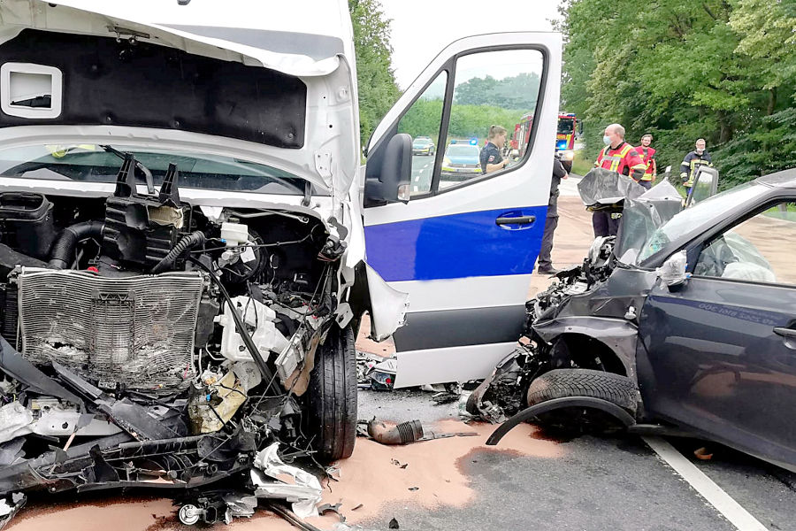 2021 06 01 000Am heutigen Dienstagnachmittag kam es gegen 13.45 Uhr zu einem Unfall auf der A7 in Höhe der Anschlussstelle Rhüden in Fahrtrichtung Hannover. Dabei kollidierte ein Lkw mit einem Auto. Der Lkw geriet dadurch ins Schleudern und fuhr in die Mittelleitplanke.