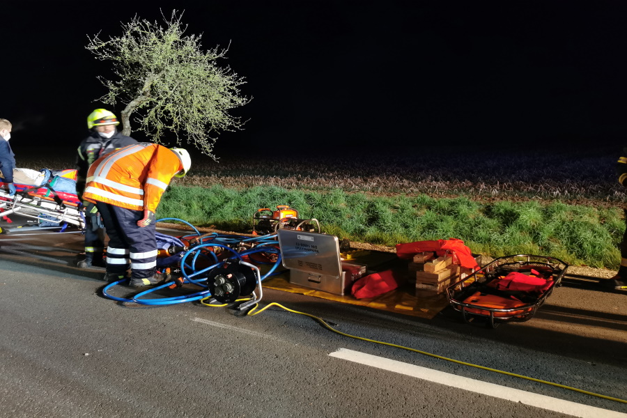 Verkehrsunfall mit eingeklemmter Person auf K66