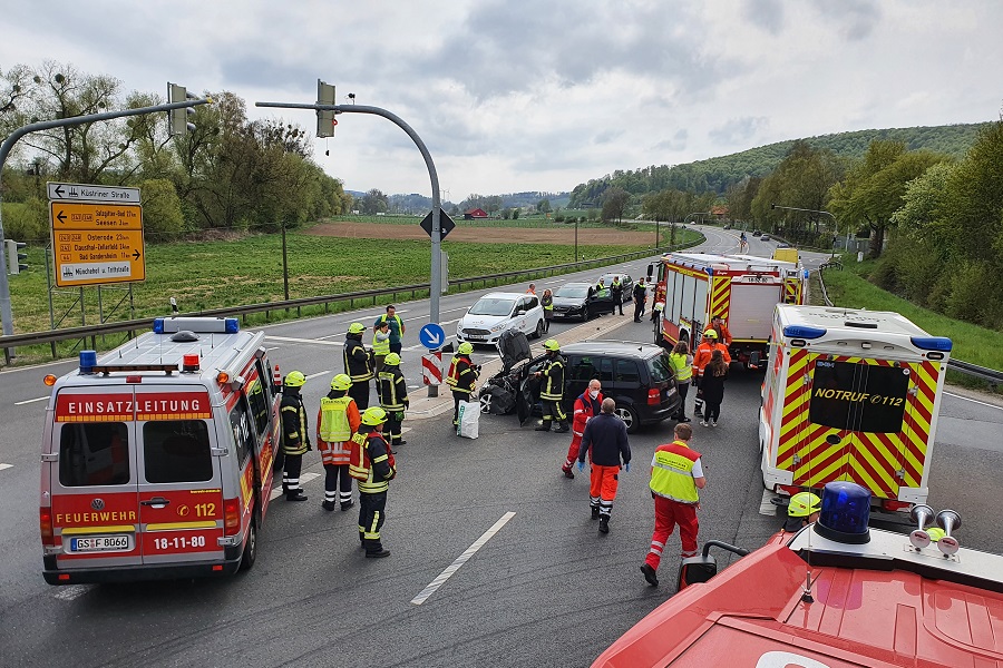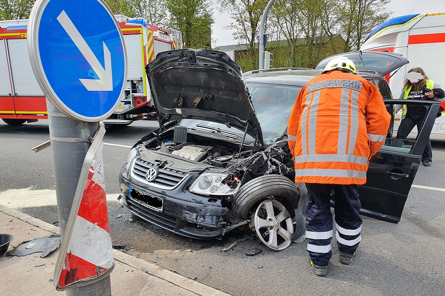 Nachdem die Fahrertür mit wenigen Handgriffen geöffnet werden konnte, wurde der verletzte Fahrer durch den Rettungsdienst und Feuerwehr betreut sowie medizinisch versorgt, anschließend schonend aus dem Fahrzeug gerettet und zur weiteren Behandlung ins Krankenhaus verbracht. Der Fahrer des zweiten beteiligten PKW blieb unverletzt, wurde aber dennoch vom Rettungsdienst begutachtet.