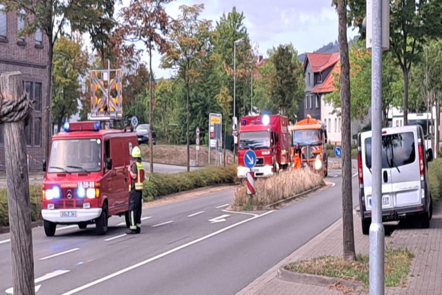Durch den Einsatzleiter wurde Umgegend auch die Kehrmaschine des Baubetriebshofes der Stadt Seesen angefordert.
