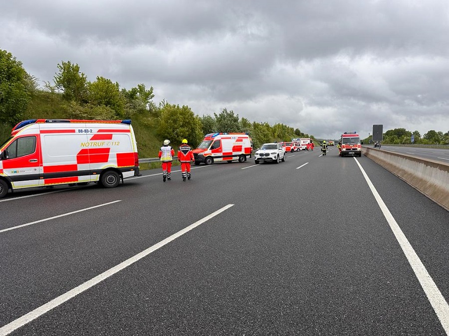 Am 23.05.2023 kam es gegen 09:48 Uhr zu einem schweren Verkehrsunfall auf der Bundesautobahn 7 kurz hinter der Auffahrt Rhüden in Fahrtrichtung Bockenem. Die Feuerwehren aus Seesen, Rhüden sowie Rettungsdienstkräfte aus den Landkreisen Goslar und Northeim wurden daraufhin alarmiert.