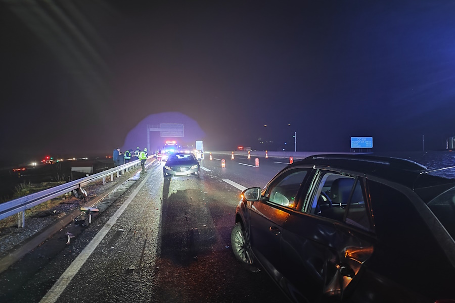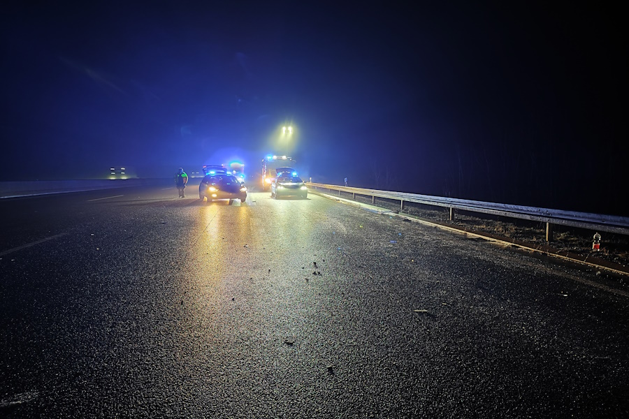 2022 04 30 005Unfallserie auf A7 bei Straßenglätte mit zwei verletzten Personen.