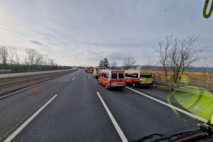 Verkehrsunfall auf der A7 mit erdgasbetriebenden Lkw.