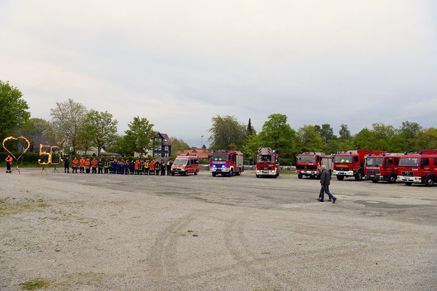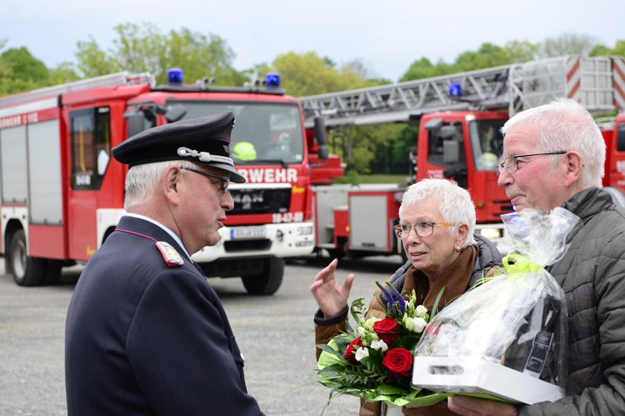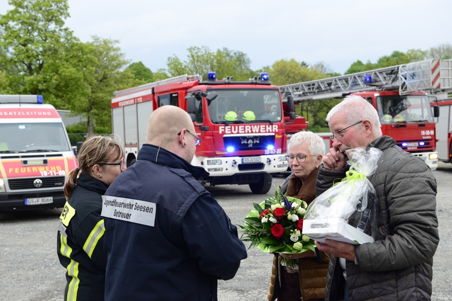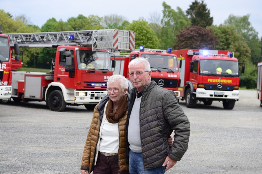 Dies nicht alltägliches Ereignis, die "Goldenen Hochzeit" von Sigrid und Horst, rief auch die Frauen und Männer der Freiwilligen Feuerwehr Seesen auf den Plan. Verständlich, dass die Blauröcke zu diesem besonderen Festtag der Beiden, mit etwas Besonderem aufwarten konnten. Seine ehemalige Gruppe hatte sich im Vorfeld überlegt, dem Jubelpaar auf dem Schützenplatz zu gratulieren, ohne das sie von diesem Vorhaben etwas wussten. Ihr Sohn lockte die Beiden daher unter einem Vorwand zum Ort der Veranstaltung.