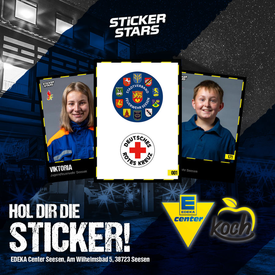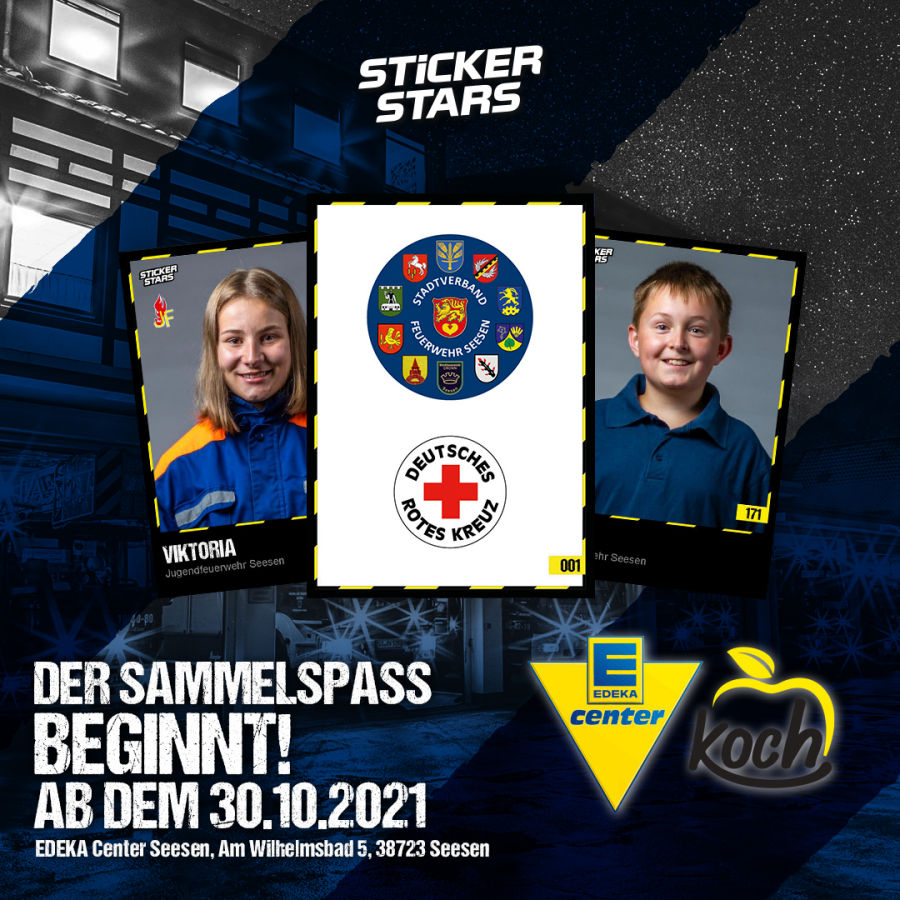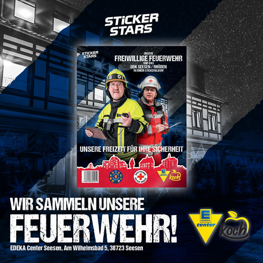 Beim Besuch im E-Center Koch in Seesen richten viele ihren Blick momentan nach oben. Denn die Sticker-Stars der örtlichen Feuerwehren des Seesener Stadtverbandes und der beiden DRK-Ortsvereine Seesen und Rhüden sind hier zu sehen. Ab den kommenden Sonnabend ist der Sammelspaß exklusiv im E-Center Koch erhältlich. Zum Start haben sich Feuerwehr und DRK einen abwechslungsreichen Aktionstag überlegt, denn auf dem Parkplatz und im Einkaufscenter dreht sich an diesem Tag von 10 bis 14 Uhr alles um den Tag der Seesener Rettungskräfte. Der große Sammelspaß beginnt: Ab Samstag, 30. Oktober, können im E-Center Koch in Seesen Sammelbilder aller Mitglieder der Freiwilligen Feuerwehren aus dem Seesener Stadtgebiet sowie der DRK Ortsvereine erworben werden. Nach dem berühmten Vorbild der Panini-Hefte haben die Seesener ein eigenes Album entworfen.