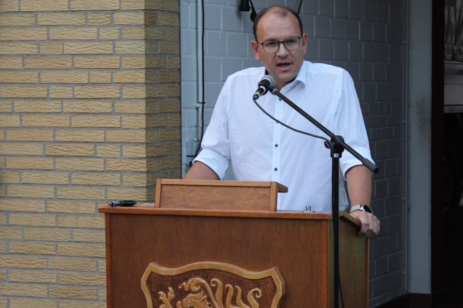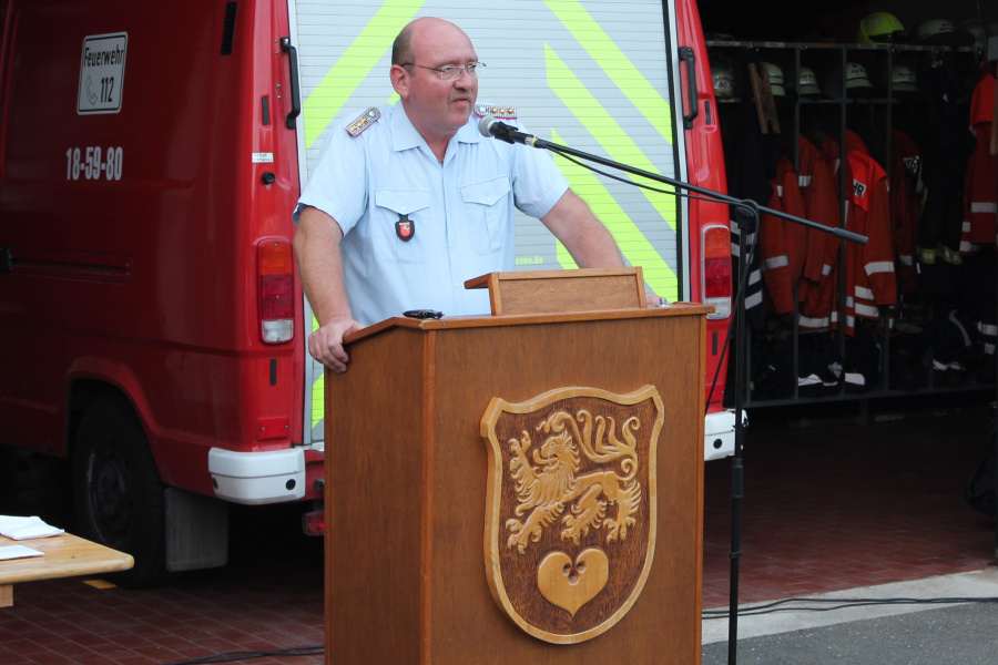Bürgermeister Erik Homann wies in seiner Ansprache auf die professionelle Arbeit der Einsatzkräfte hin. Dabei erinnerte er an ein Bild aus Rhüden. Hier hatten sich völlig erschöpfte Feuerwehrleute auf die Wiese gelegt, um ein klein wenig Schlaf zu finden. Alles wird ehrenamtlich geleistet, zum Wohle Aller. Zudem bezeichnete er die Feuerwehrleute als „letzten Verteidigungswall, den wir bei solch einer Katastrophe haben.