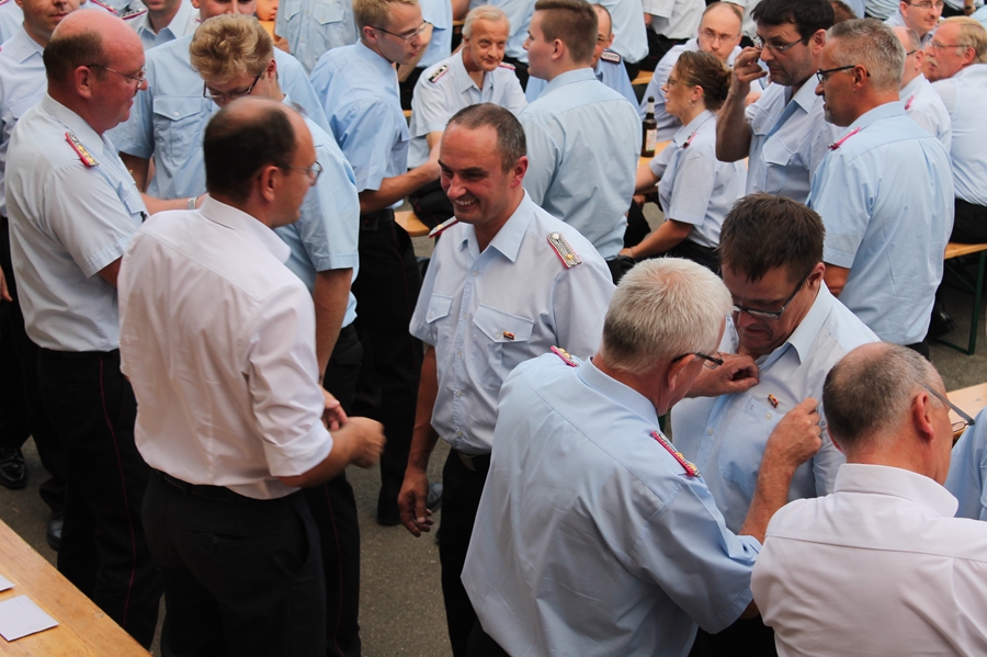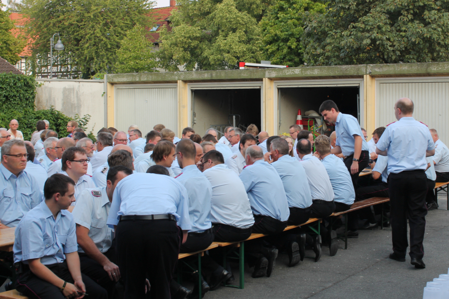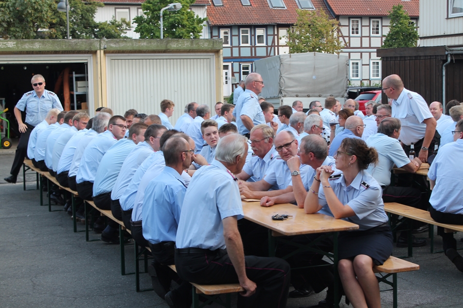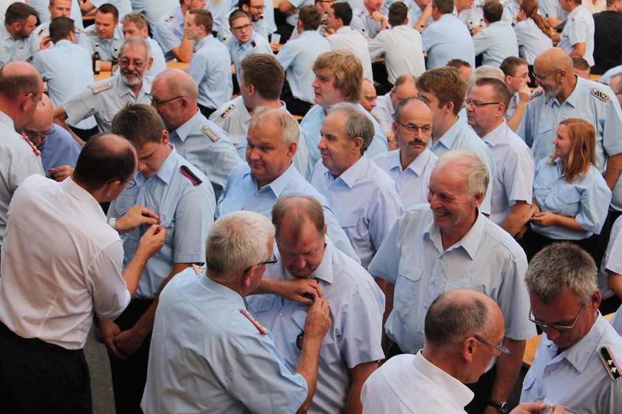 Im Rahmen der diesjährigen Sommerbegegnung des Landkreises Goslar hatte Landrat Thomas Brych insgesamt 1.500 Bandschnallen stellvertretend an hochrangige Funktionsträger von Feuerwehren, des Deutschen Roten Kreuzes (DRK) und des Technischen Hilfswerkes (THW) übergeben. Da die Auszeichnung Aller die Veranstaltung gesprengt hätte, wurden die Führungskräfte vom Landrat gebeten, die Bandschnalle innerhalb des jeweiligen Stadtgebietes an die Einsatzkräfte zu verleihen. In Seesen wurde nach einem passenden Termin gesucht, jetzt war es so weit. Auf dem Hof der Feuerwehr Seesen versammelten sich die zu Ehrenden.