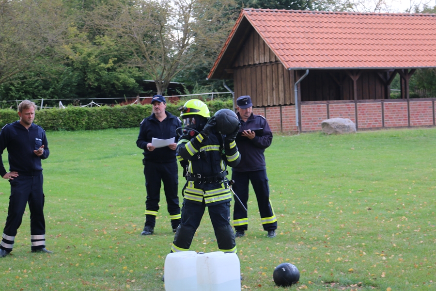 Bei der Orientierungsfahrt im Verbund mit einem Leisungsvergleich auf Stadtebene müssen die Brandschützer einiges an Leistung bringen, die Vorgaben sind für alle niedersächsischen Feuerwehrleute gleich. Am vergangenem Dienstag stellten sich insgesamt zehn Gruppen der breitgefächerten Herausforderung, bei der Aufgaben unterschiedlichster Art gelöst werden mussten. Vorbereiten konnten sich die Teams sich im Vorfeld ganz induviduell und gruppenintern nach den Vorgaben des Landesfeuerwehrverbandes Niedersachsen. Anspruchvoll ist vor allem die Zeitvorgabe. Wird beispielsweise die Löschübung nicht in viereinhalb Minuten abgeschlossen, gilt die Aufgabe als nicht bestanden.